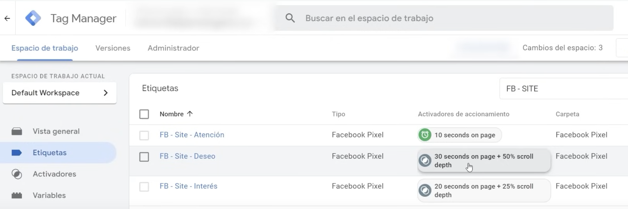 4. Enviar estos Activadores a Facebook (Etiquetas): En la sección «Etiquetas» de GTM, creas nuevas etiquetas.