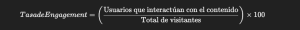 Ejemplo: Si en un mes tu blog recibió 20,000 visitas y 3,000 usuarios dejaron comentarios, hicieron clic en enlaces o pasaron más de 2 minutos en la página, la tasa de engagement sería: