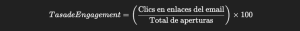 Si enviaste 5,000 correos, 1,000 personas los abrieron y 200 hicieron clic en un enlace, la tasa de engagement sería: