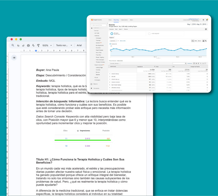 Depspués de la implementación de las paltaformas, iniciamos con un análisis en Google Analytics para identificar las páginas con mayor tráfico y aquellas con alta tasa de rebote. Con Google Search Console, detectamos palabras clave palabras clave con potencial en páginas que ya tenían visibilidad, pero no estaban bien posicionadas.