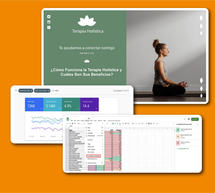 Trabajamos con una Clínica que brindaba servicios de terapia holística. Contaban con un blog sin una estrategia clara con publicaciones esporádicas que no estaban optimizadas para SEO, lo que limitaba su alcance y conversión. Tampoco tenían implementadas plataformas de analìticas y marketing digital. Si bien generaban tráfico, la tasa de rebote era alta y las conversiones eran mínimas.